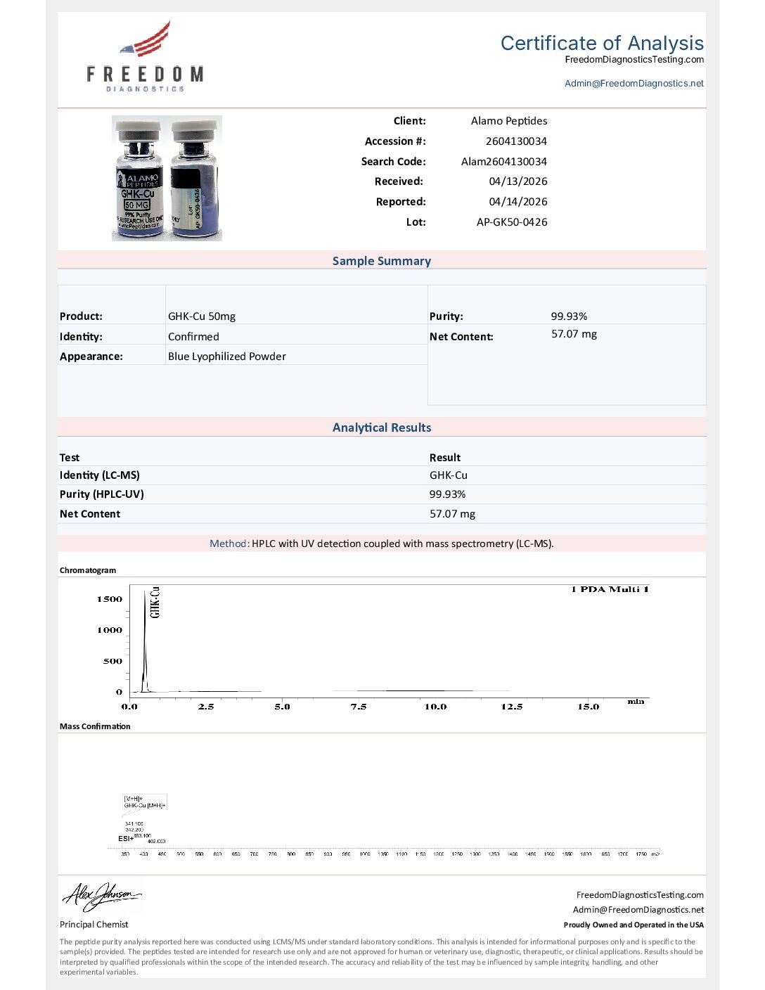 For research use only by qualified professionals. Contact support@alamopeptides.com (or via Discord/Telegram) for COA requests or inquiries.